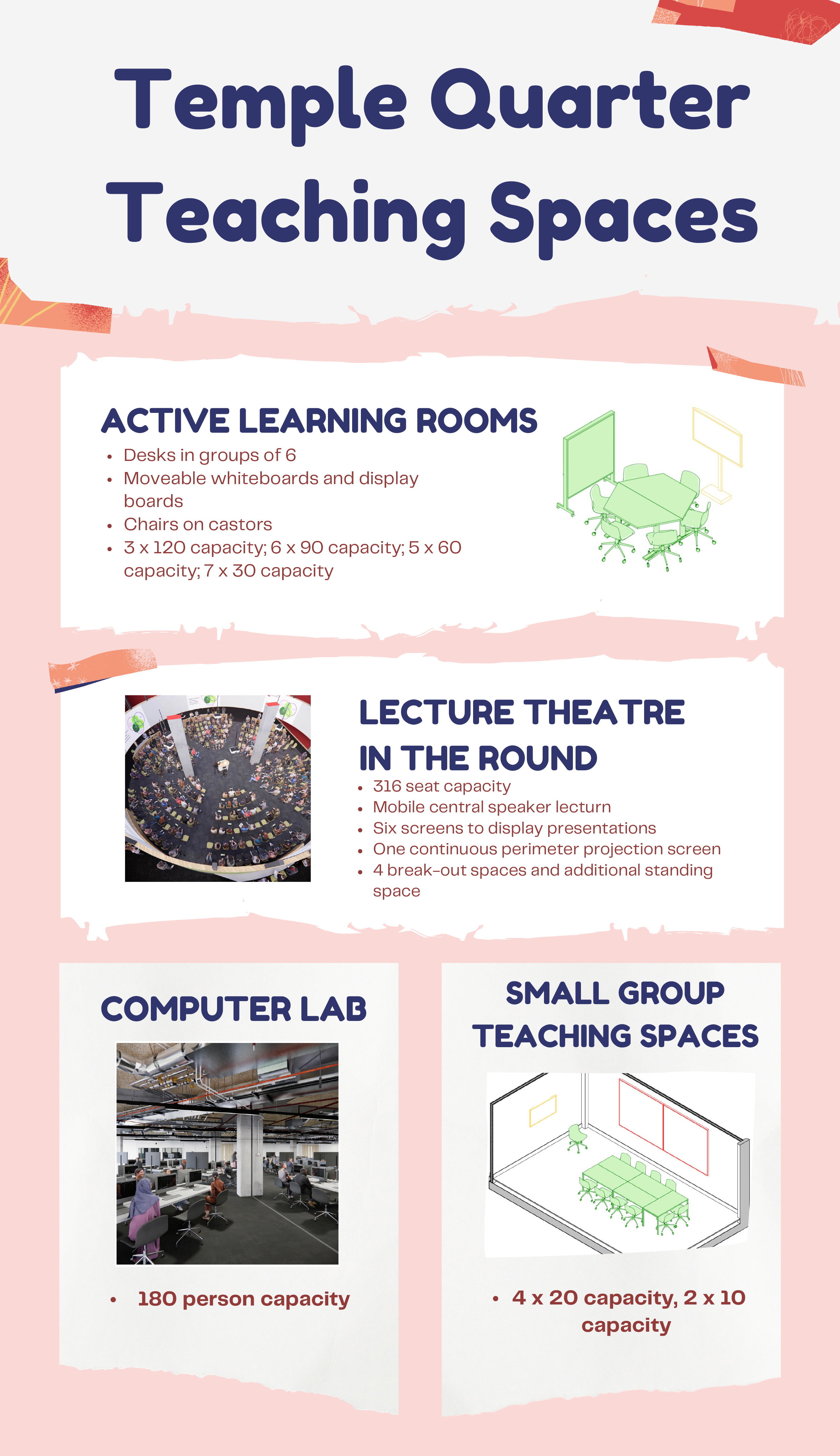 Want to know a bit more about the teaching spaces available in Temple Quarter? We’ve put together this useful infographic to show you the types of spaces and their capacity! Feel free to download it here and share it with colleagues.